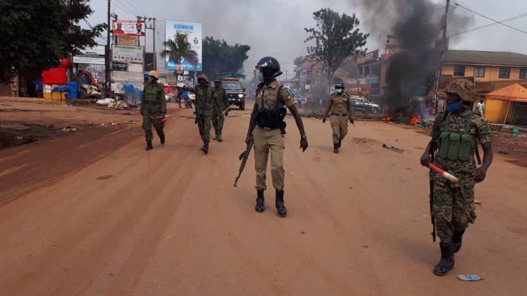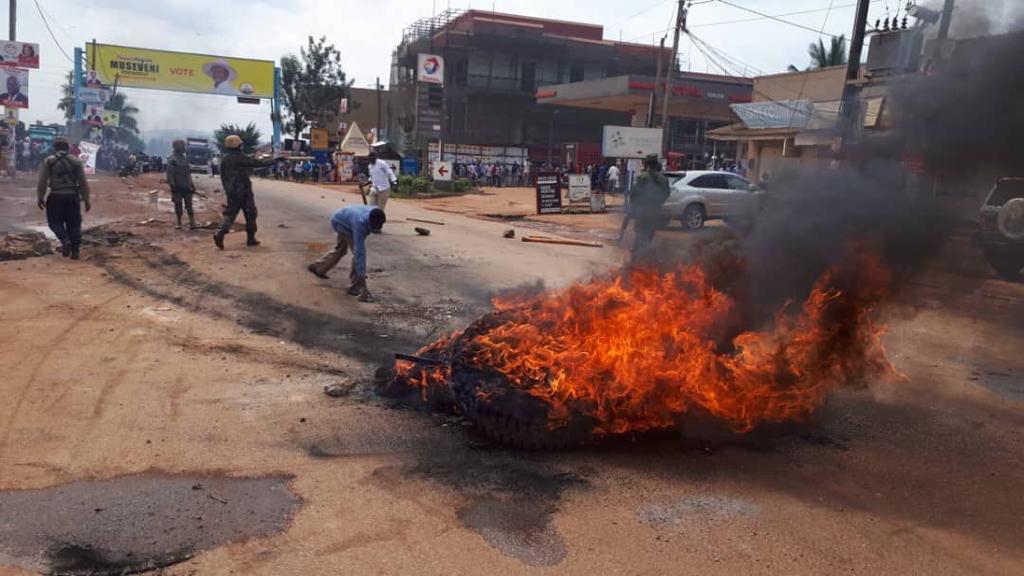 Waandamanaji wamekuwa wakichoma magurudumu na takataka na kufunga barabara jijini Kampala. Biashara zimefungwa na askari wengi wameonekana barabarani