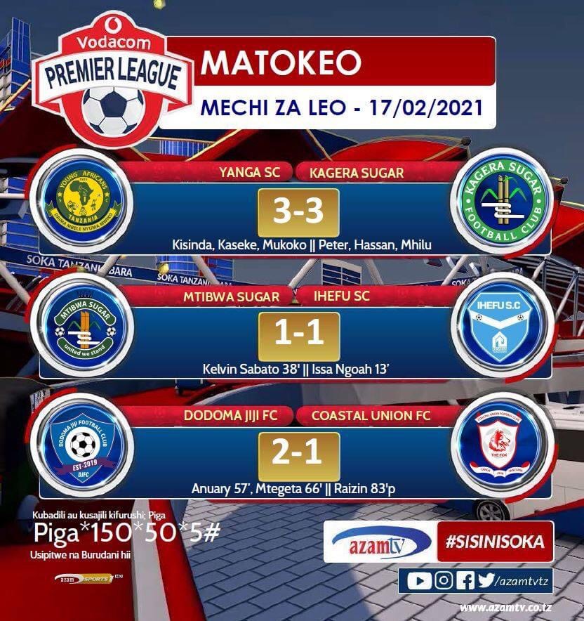 Aidha, baada ya kumlazimisha Azam kichapo cha goli 2-1 katika Dimba la Mkwakwani, Coastal Union hii leo wamerejeshewa adhabu ya goli 2-1 na Dodoma Jiji katika Dimba la Jamhuri huko Dodoma